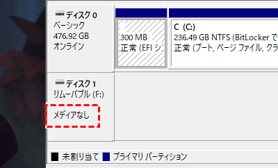 ユーザーケース:ディスクの管理でUSBが「メディアなし」と表示されて、データの復旧方法は?
