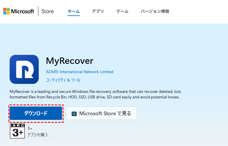 ステップ 1:Microsoft Storeからまたは上のボタンを押してMyRecoverをPCにダウンロード後、USBドライブを接続します。