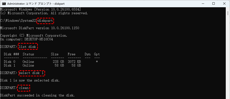 方法7:DiskPartを使用してパーティションをクリーンアップし再構築