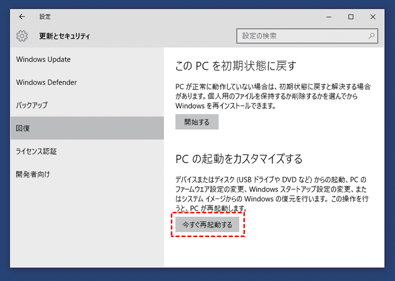 ステップ 2. 「高度なスタートアップ」の下にある「今すぐ再起動する」をクリックします。