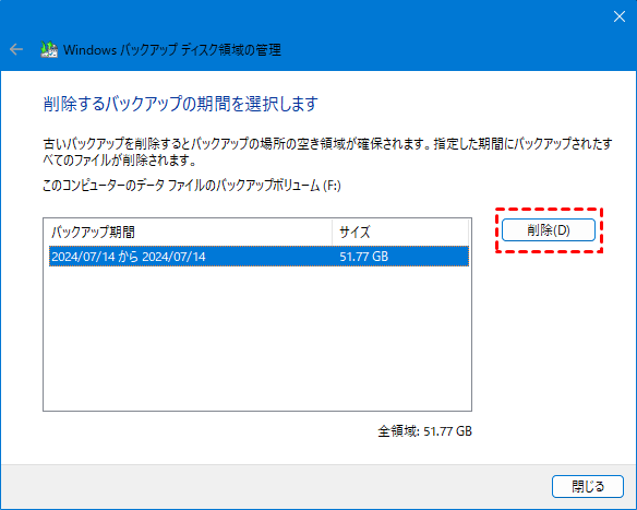古いバックアップを削除すると、新しいバックアップ用のディスク容量が解放され、バックアップドライブがストレージ不足にならずに正常に機能し続けられます。