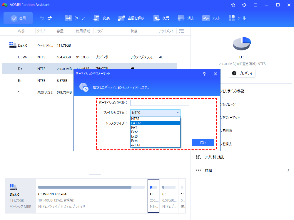 ステップ 3. 必要に応じて希望のファイルシステムを選択し、「はい」をクリックします。