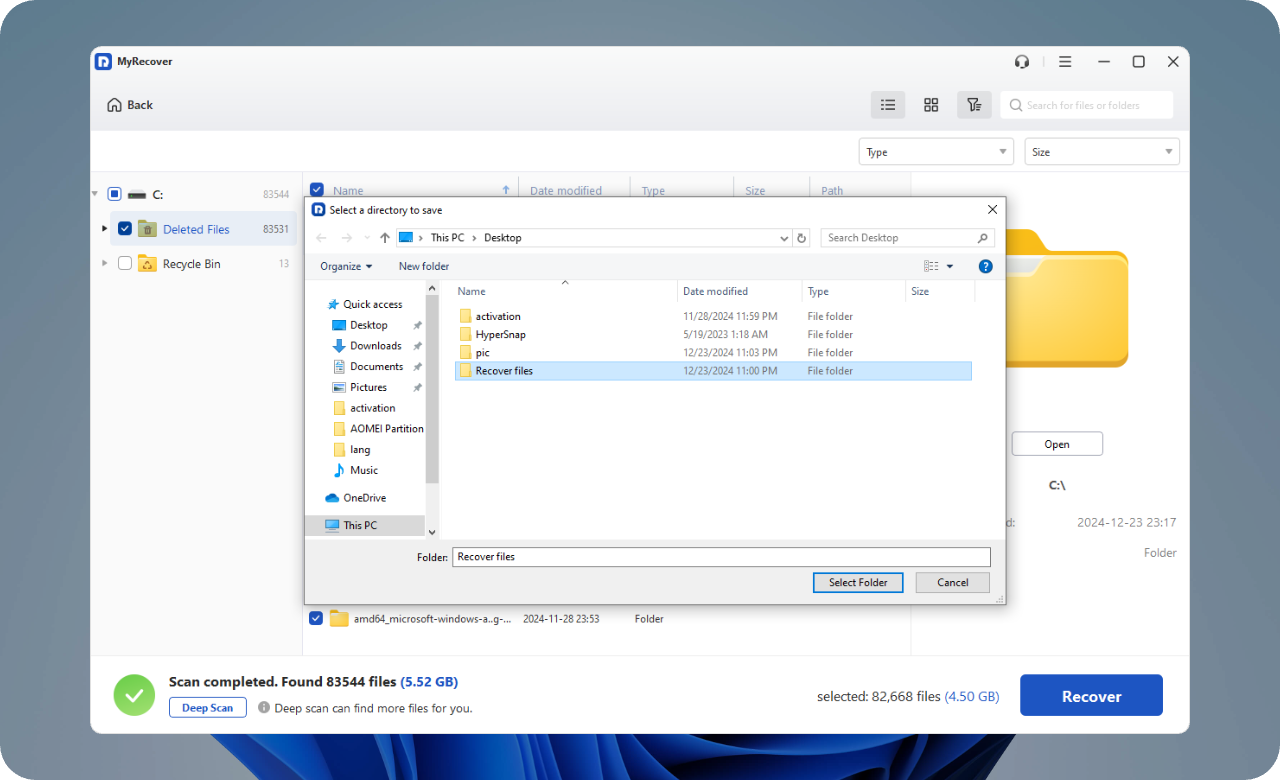 "With MyRecover, users can easily recover files after emptying the Recycle Bin. The deep scan feature increases the likelihood of successful file restoration, ensuring thorough searches."