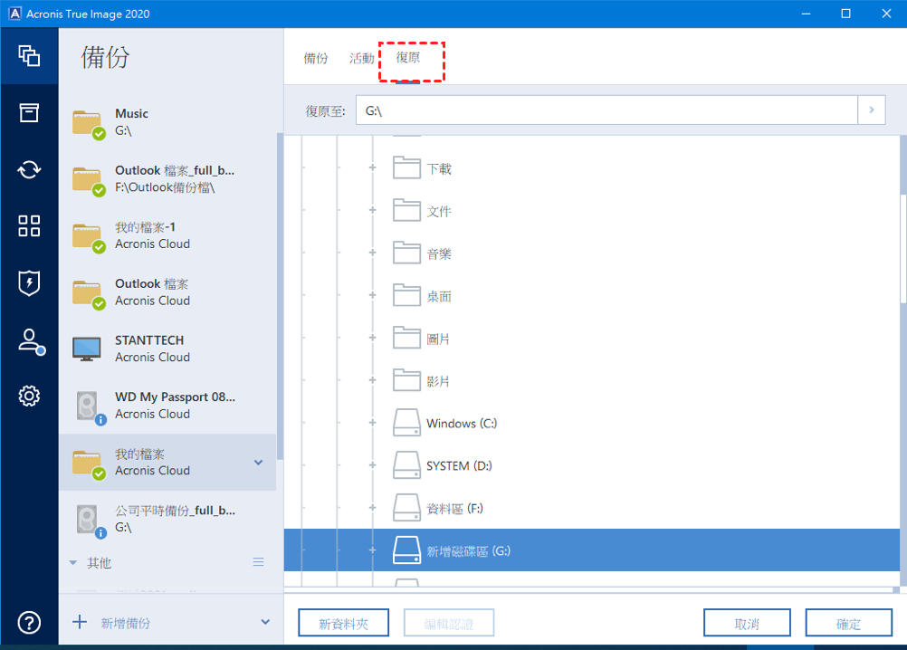 使用 Acronis True Image for Western Digital 恢復資料(需有備份)