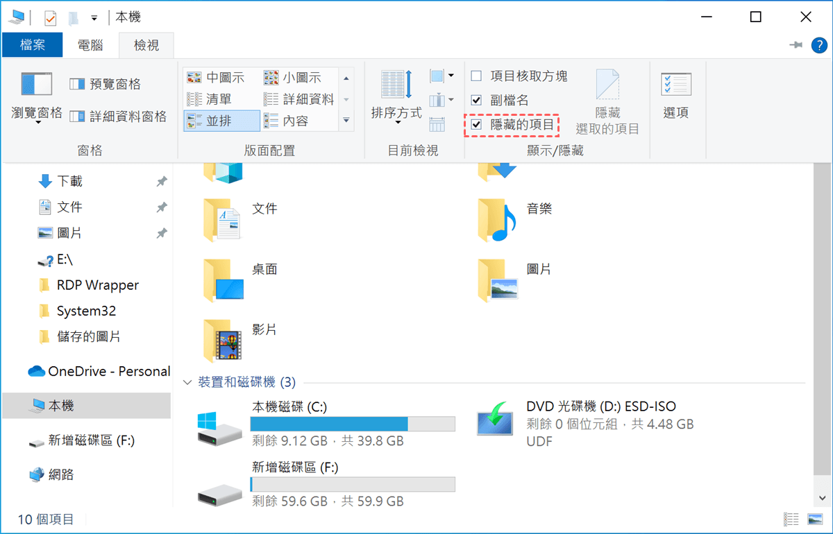 若要在檔案總管中顯示並檢視 $Recycle.bin 檔案,請按照以下逐步說明操作: