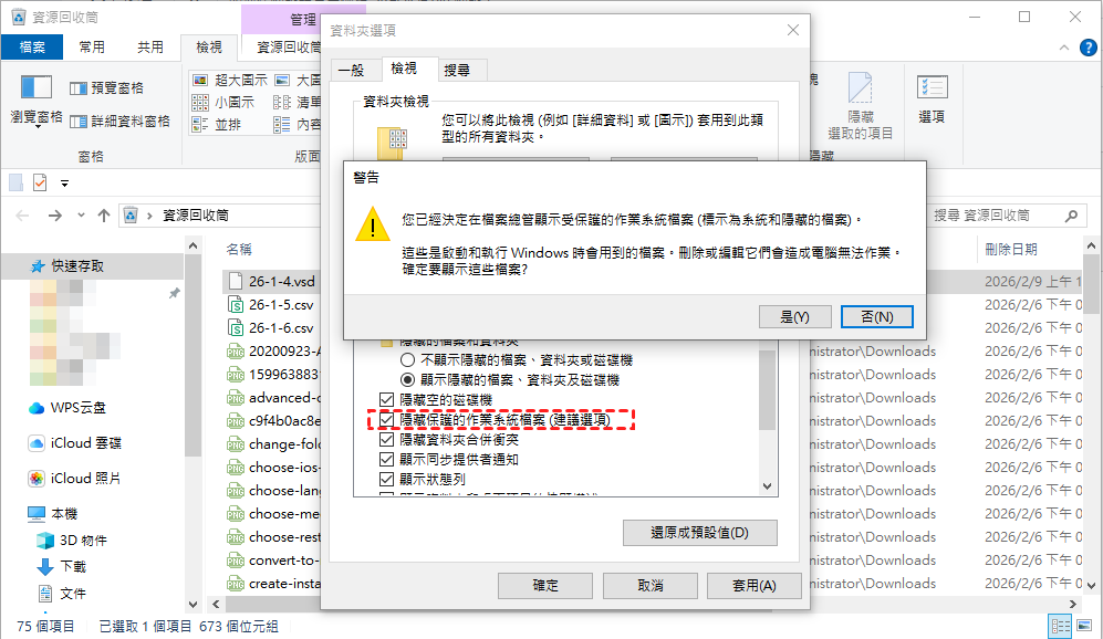 步驟 3:取消隱藏受保護的系統檔案(重要!)