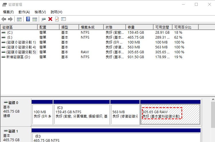 - 分割表錯誤或遺失:意外刪除分割區或操作失誤可能導致磁碟顯示為 RAW 格式。