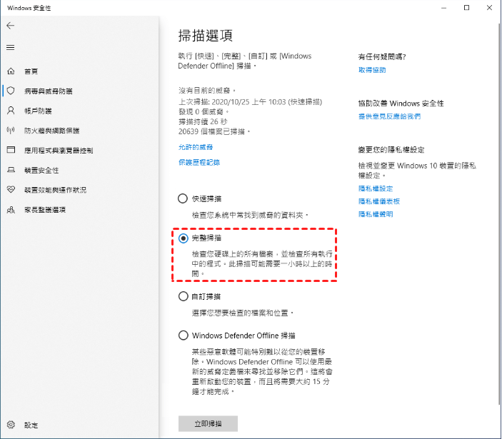 解決方案 4. 掃描病毒與惡意軟體