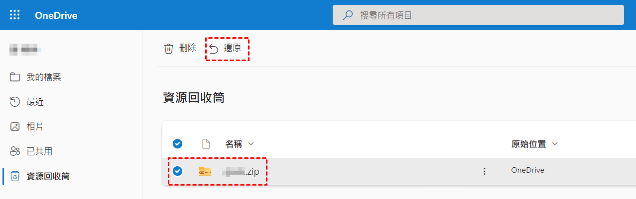 若檔案未進入資源回收筒,而是保留在本機資料夾中,你只需將其再次備份至 OneDrive 即可。