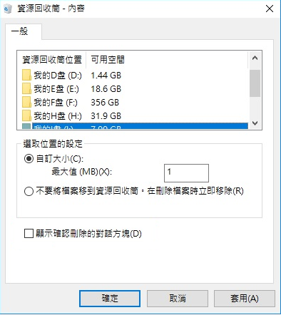 如果你空間不足或對刪除操作有把握,可以完全跳過資源回收筒: