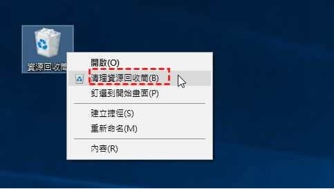 1. 在資源回收筒圖示上按右鍵並選擇內容。