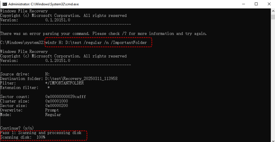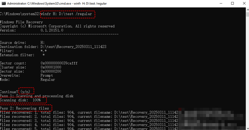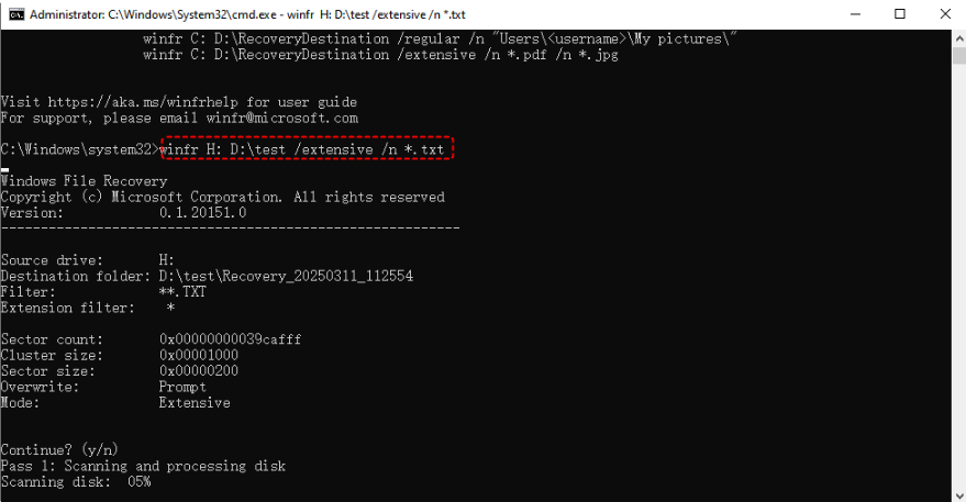 現在,讓我們透過一些常見的指令範例,快速學會如何在 Windows 10 和 Windows 11 中使用 Windows File Recovery CMD。