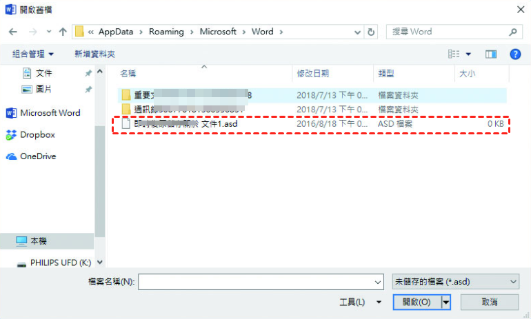步驟 5. 依照修改日期排序,找到最近的那個檔案,用 Word 開啟看看內容是否正確。