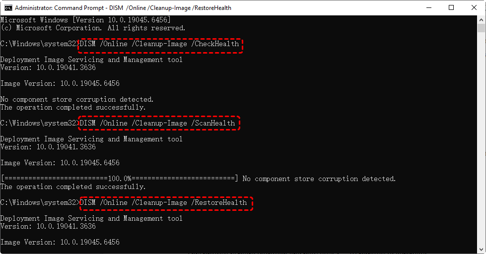 This step fixes corruption found during the previous scans and helps restore the Windows image to a healthy state.