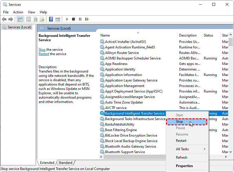 Step 3. After all services are stopped, right-click on each one again and select Start. Begin with Background Intelligent Transfer Service (BITS), then Cryptographic Services, and finally Windows Update.