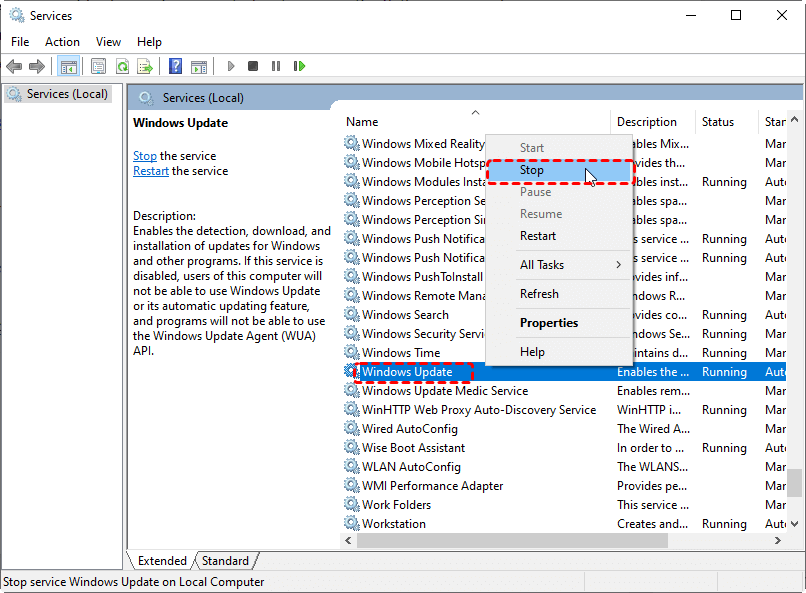 Step 2. In the list of services, locate the following services, right-click on them and select "Stop".