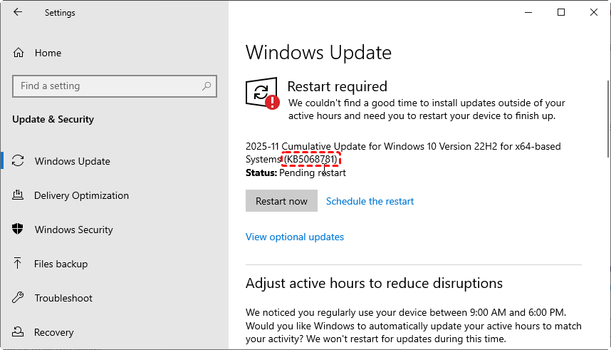 Step 1: Go to "Settings > Update & Security > Windows Update".Check the update history to find the KB number (e.g., KB5068781) of the update that failed.