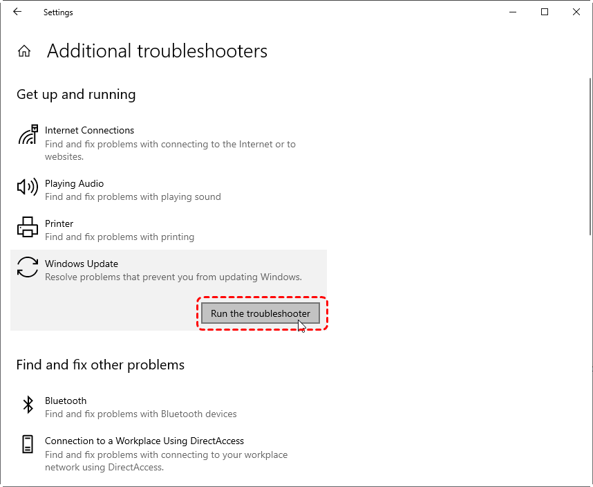 Step 3. Select "Windows Update" and click "Run the troubleshooter".