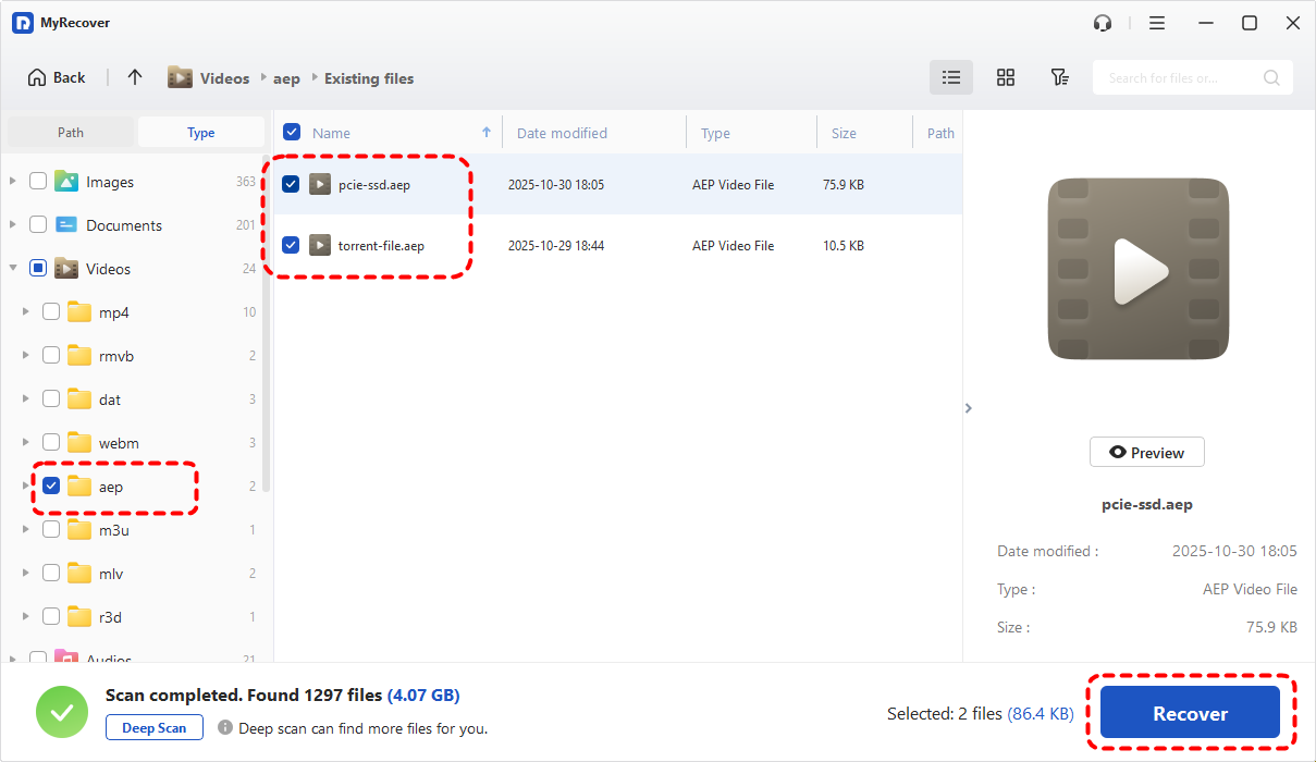 Method 3. Recover Deleted AEP File with MyRecover