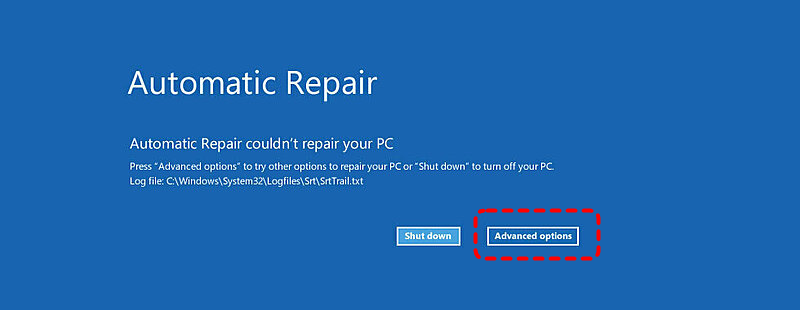 Step 1. Access "Advanced options" from the Automatic Repair screen.