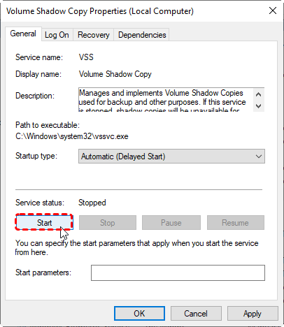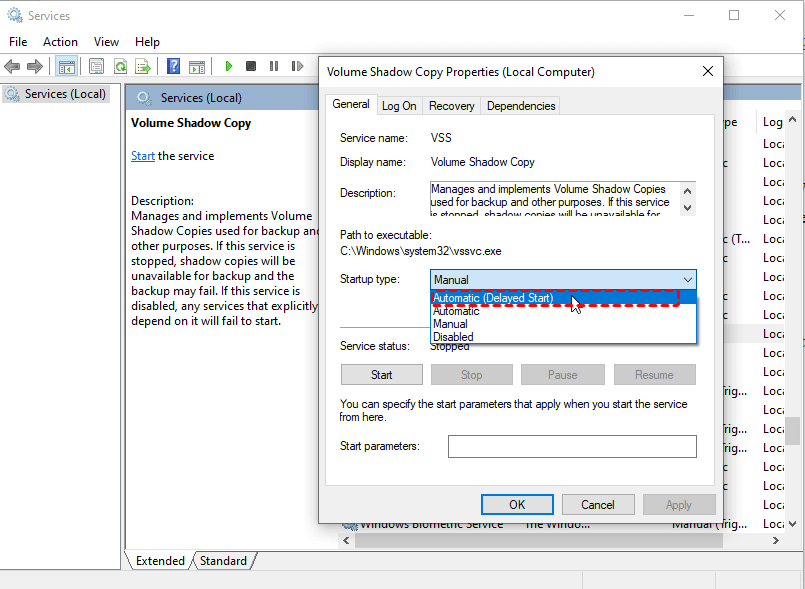 5: Restart the Volume Shadow Copy Service