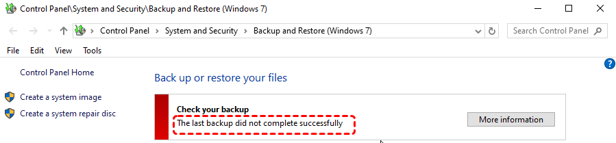 If your system or backup drive runs out of storage, Windows Backup and Restore may not work when it comes tocreatingor completingbackups.