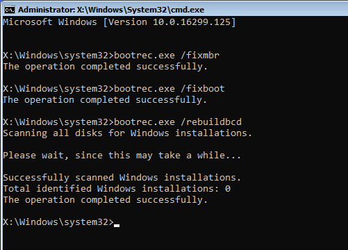 Incorrect boot configuration data (BCD) can trigger the "bad system config info" error. Bootrec.exe is a built-in Windows tool you can access via the WinRE Command Prompt, which fixes problems with the Master Boot Record (MBR), boot sector, and Boot Configuration Data (BCD) storage.