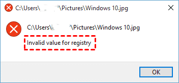 How do I fix the "invalid value for registry" error when opening JPG files?