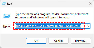 rundll32.exe shell32.dll,Control_RunDLL sysdm.cpl,,3