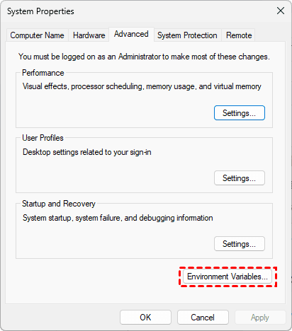 2. Then tap Environment Variables to open it.