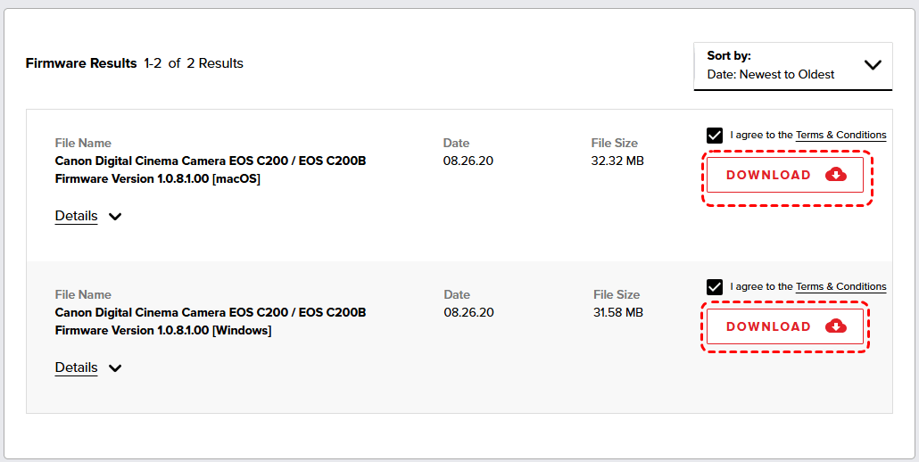 Step 2. Visit the Canon official support website and select your camera model. Navigate to the Drivers & Downloads section and locate the latest firmware for your model.