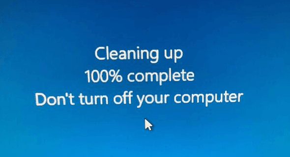 Windows 10 stuck "Cleaning up 100% complete. Don't turn off your computer."