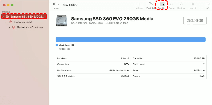 Step 1. Open Disk Utility, select your SD card from the list on the left.