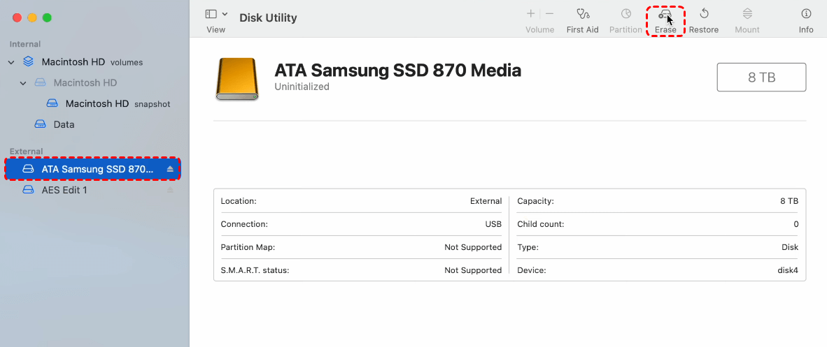 Step 1. Select your SD card from the left-hand column of Disk Utility.