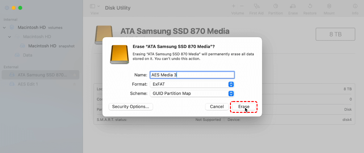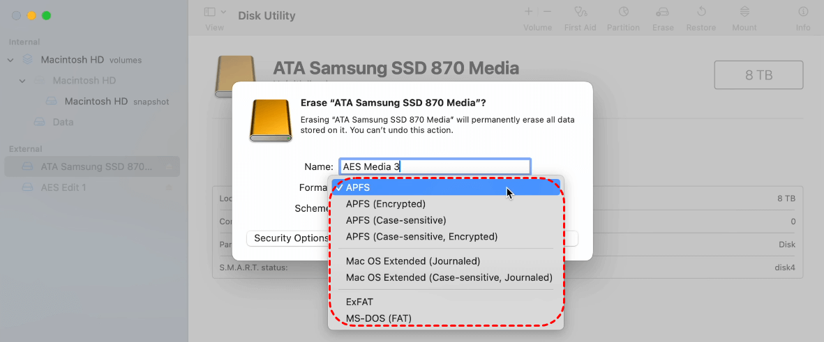 - Format: Choose exFAT (recommended for cards larger than 32GB) or MS-DOS (FAT) (for cards 32GB or smaller).