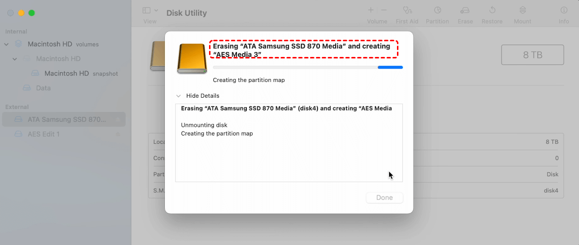 Once the process is complete, Restart your Mac and check if the SD card shows the correct free space.
