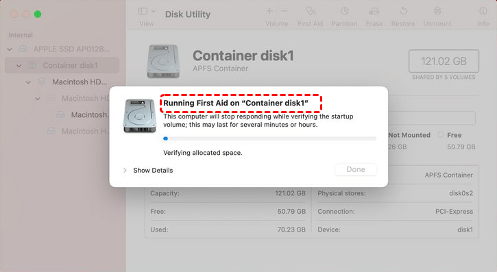 Step 3. After clicking First Aid, click "Run" to start the process. Disk Utility will scan the SD card for file system errors and attempt to repair any issues it finds.