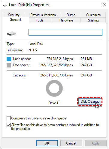 Step 2. Under the "General tab", click on the "Disk Cleanup" button.