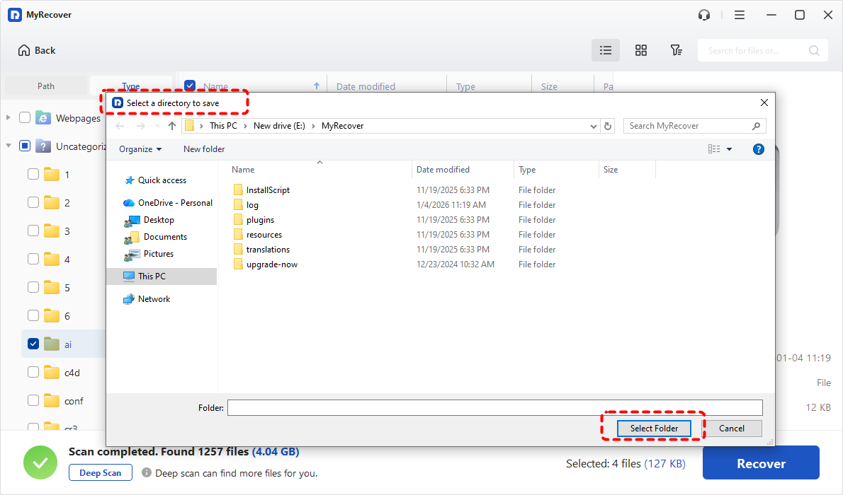 Step 4. Select a safe location to save the recovered files.