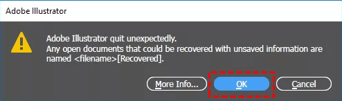 Step 1. Launch Illustrator, you will see a message "Adobe Illustrator quit unexpectedly. Any open documents that could be recovered with unsaved information are named [Recovered]."