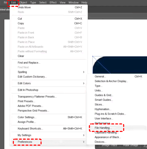 Step 1. Launch Adobe Illustrator and go to "Edit" > "Preference" > "File Handing & Clipboard".