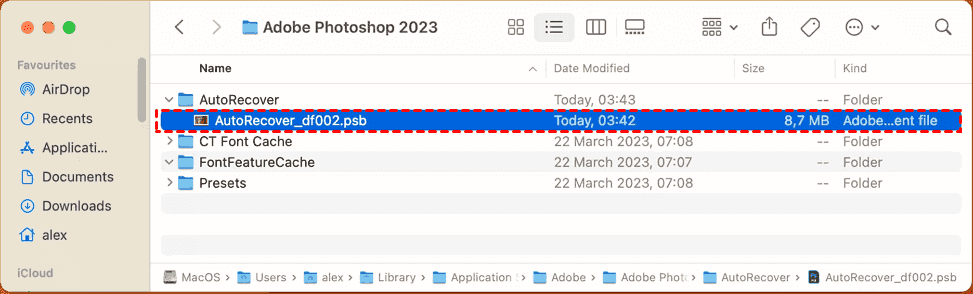 macOS Photoshop AutoRecover Location: