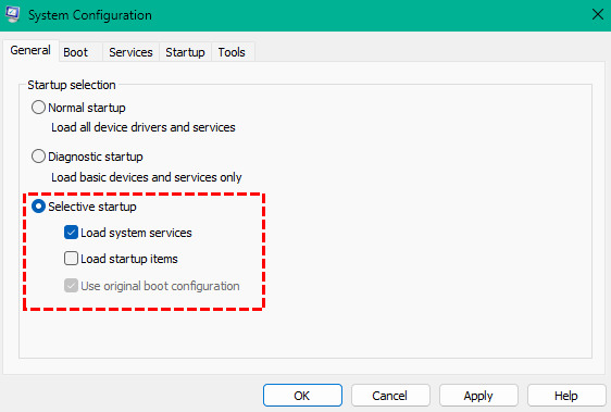2. In System Configuration, select Selective startup.