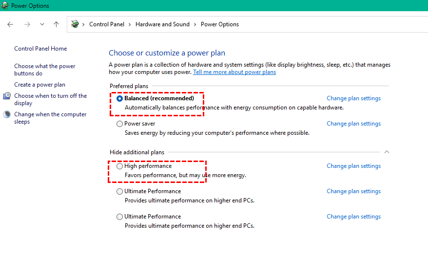 3. Choose Balanced or High performance.