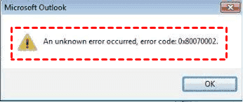 - Microsoft Outlook: An unknown error occurred, error code: 0x80070002