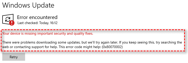 - There were problems downloading some updates, but we’ll try again later. If you keep seeing this, try searching the web or contacting support for help. This error code might help: (0x80070002)