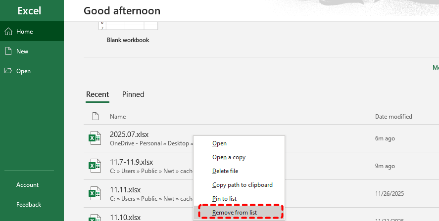 If you’ve moved or renamed the file to a new location, be sure to open it in Excel from its new path and delete the original location entry from the Excel "Recent" list. Otherwise, the error "Excel file has been moved, renamed or deleted" may still appear when you try to access the file in "Recent", as the Recent won’t update the file’s location automatically.