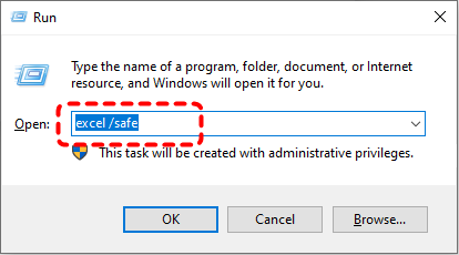 Step 1. Press "Win" + "R" and enter "excel /safe" in the Run dialog to launch Excel in Safe Mode.