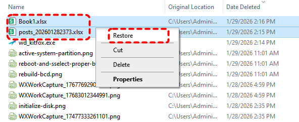 Step 3. Right click on it and choose "Restore" to recover it to its original location.