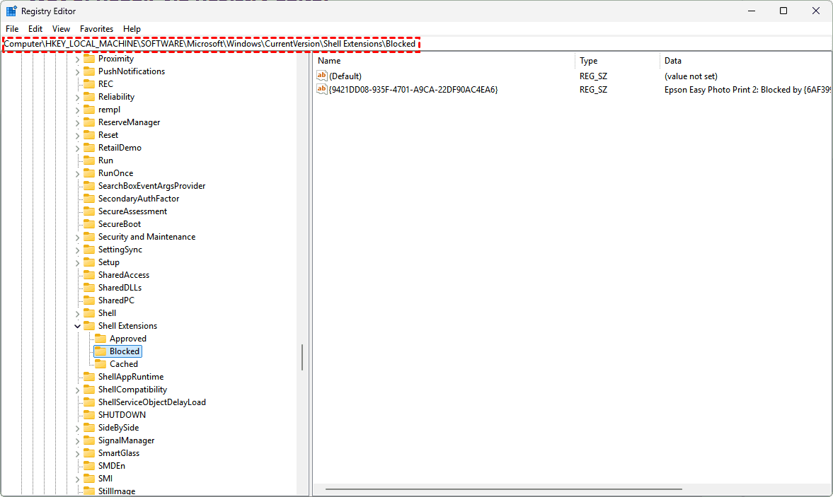 HKEY_LOCAL_MACHINE\SOFTWARE\Microsoft\Windows\CurrentVersion\Shell Extensions\Blocked